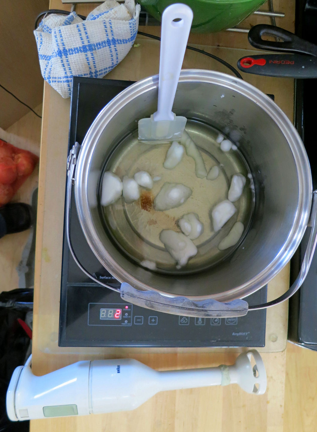 put them in the steel pot. I then put the pot on the induction plate on lowest setting